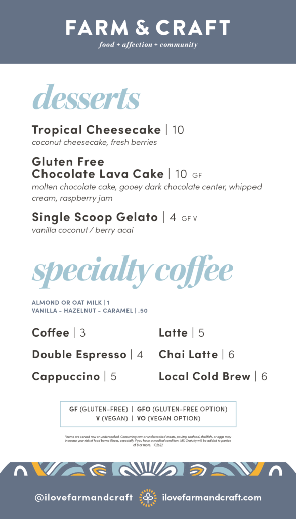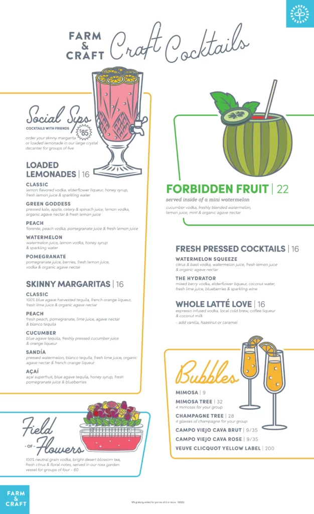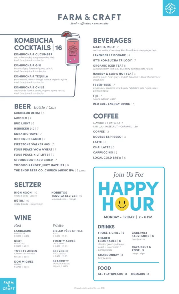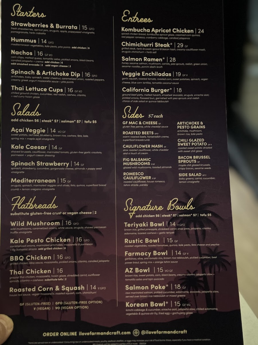 At Farm And Craft Scottsdale Menu, every dish is a celebration of fresh, locally sourced ingredients and a passion for crafting meals that nourish both body and soul. Nestled in the heart of Scottsdale, Arizona, this restaurant offers a delightful selection of farm-to-table creations that highlight the best of seasonal produce and responsibly sourced meats. Whether you're in the mood for a vibrant salad, a mouthwatering entrée, or a deliciously indulgent dessert, the menu at Farm And Craft is sure to satisfy every craving. The vibrant flavors and creative presentations make each meal an experience, perfect for a casual lunch or a night out with friends. With an inviting atmosphere and a commitment to sustainability, it's a place where you can enjoy great food while supporting local farmers and artisans.